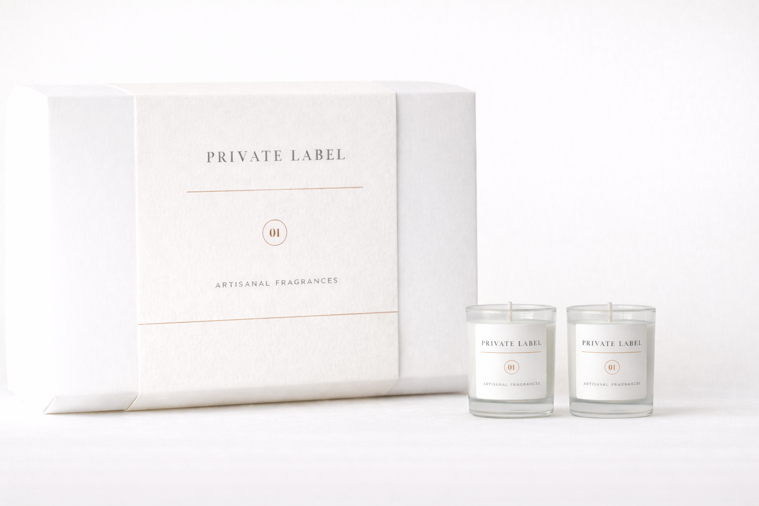 El Pack Corporativo Atelier – Dos Velas combina dos mini velas de 80 g en un estuche blanco con fajín, creando una propuesta equilibrada y profesional para regalos corporativos, campañas especiales o ediciones limitadas.
